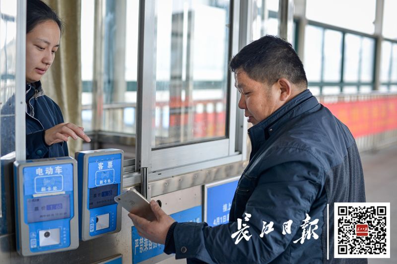 乘客正在檢票窗口掃碼支付船票。船票不貴,連人帶車刷卡兩塊九,現(xiàn)金三塊五