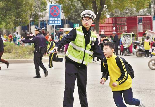 下午4時20分,快到孩子們的放學時間。身著交通協管員制服的潘迪又來到三店學校門口,護送孩子們放學。潘迪發現11臺違法停放的私家車堵住了校門,于是與同事王寬一道,逐一將其勸離。隨后,他又將一些向孩子們兜售小食品的攤販一一勸走,讓學校門口秩序井然。