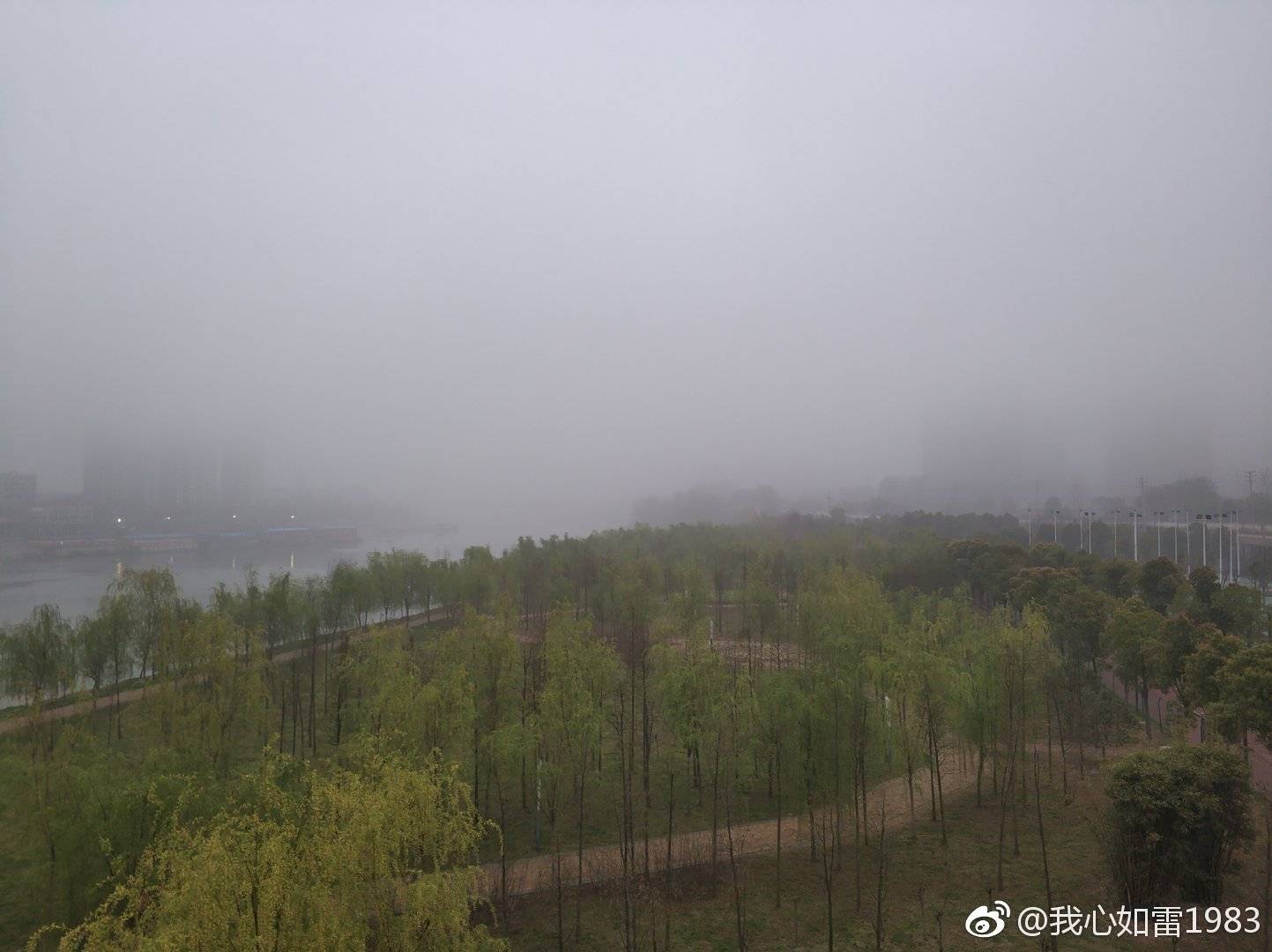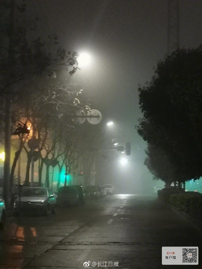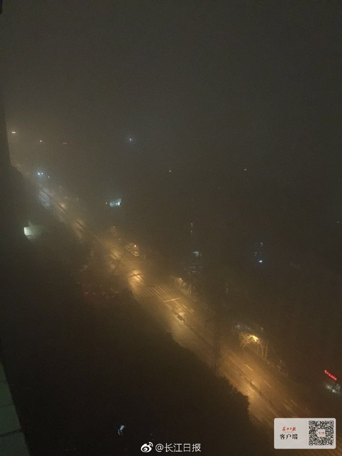 凌晨時分的武漢,已是霧氣彌漫,市民走在其間,猶如云中漫步。
