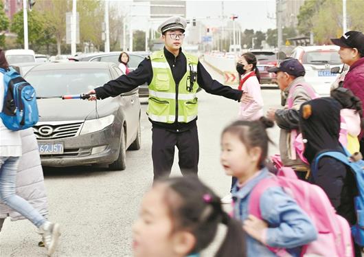 下午4時20分,快到孩子們的放學時間。身著交通協管員制服的潘迪又來到三店學校門口,護送孩子們放學。潘迪發現11臺違法停放的私家車堵住了校門,于是與同事王寬一道,逐一將其勸離。隨后,他又將一些向孩子們兜售小食品的攤販一一勸走,讓學校門口秩序井然。
