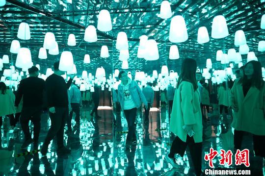 3月27日,江蘇常州太湖灣嬉戲谷內,由呼吸森林、黑暗空間、浪漫星睛、鉆石隧道四部分組成的“穿越幻境”精彩亮相,360度的鏡像、空靈的配樂、高低錯落凌空懸掛的燈盞……給游人帶來夢幻般的感受。