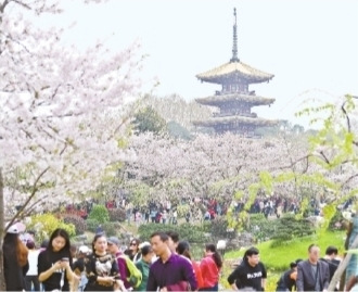 29日,東湖櫻花園繁花似錦,游客眾多 長江日報記者詹松 攝