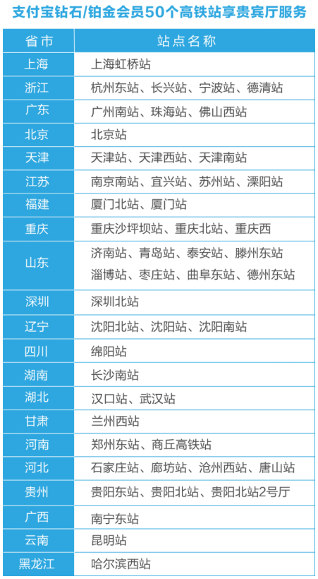 這項權益現已在以下站點開通,只要在看到貴賓室門口藍色的支付寶會員標識,即可免費享受貴賓服務。