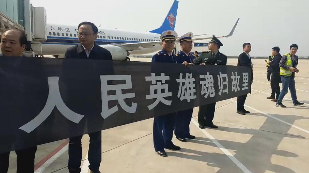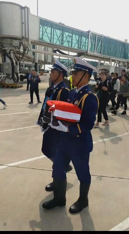 汪耀峰烈士骨灰目前已從武漢天河機場出發,前往孝昌烈士陵園。