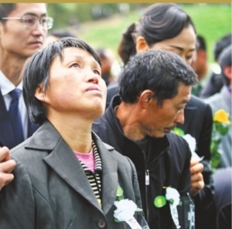 儀式最后一個環節:家屬為烈士敬獻菊花。現場奏起哀樂,家屬們在攙扶之下緩緩走向獻花臺。此刻,多數家屬再也抑制不住情緒,悲聲慟哭。現場的工作人員、戰士無不動容,紛紛低頭抹淚。
