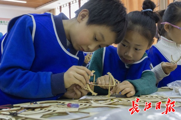 小學(xué)生學(xué)做木制地震警報(bào)器。趙穎杰 攝