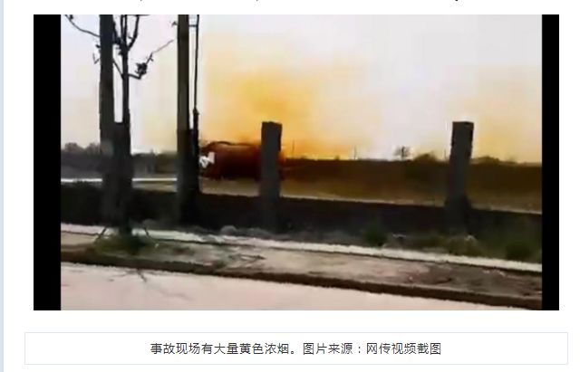 經查,16日上午10時10分,襄城余家湖化工園區4號路一西安籍罐車,因罐體內殘留的苯胺與剛灌裝的醋酸發生反應形成黃煙。10時30分,應急救援人員及時趕到現場進行處置,現場未發生爆炸,無人員傷亡。