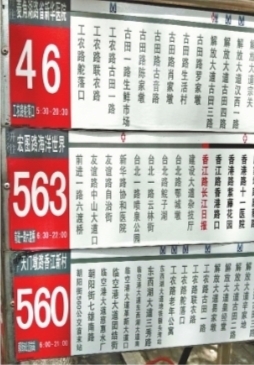 16日,記者在街頭探訪發(fā)現(xiàn),長(zhǎng)站名的公交線路比較普遍。在漢口香江路公交車站,記者在公交線路指示牌上看到,560路“臨空港大道東西湖大道南”、563路“姑嫂樹路市中心醫(yī)院后湖院區(qū)”、46路“建設(shè)大道地鐵取水樓站”等,站名多在10個(gè)字以上。