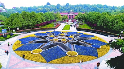 首義廣場上巨型花帶圖案 記者楊濤 攝