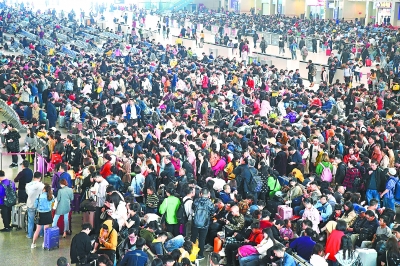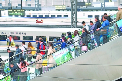 4月30日,漢口火車站,隨著“五一”假期到來,鐵路客流迎來高峰。人們或返鄉團聚,或外出旅游,踏上各自的旅程 記者詹松 通訊員代能躍 攝