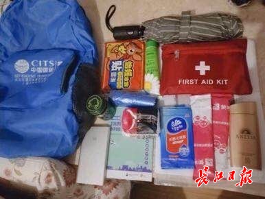 長江日報記者翻開張玲的背包,看到里面全部是給客人準備的濕紙巾、防曬霜等生活用品。背包里最醒目的是一個紅色十字包,拆開全是創可貼、暈車貼、消毒棉簽等藥品......