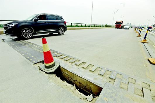 楚天都市報(bào)訊(記者張萬(wàn)軍蕭顥)橋面破損處放置了鋼板,不料鋼板放置不平且上面有鋼釘,多輛車(chē)晚上經(jīng)過(guò)時(shí)輪胎被割破。前晚,黃陂區(qū)灄水河大橋上發(fā)生了這樣的一幕。昨日記者探訪(fǎng)時(shí)發(fā)現(xiàn),雖然鋼板已被移走,但橋面的破損處仍未得到修復(fù),存在一定安全隱患。
