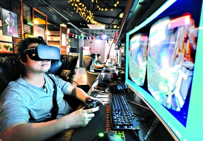 玩家通過盛天網絡旗下易樂游平臺在網吧體驗VR游戲