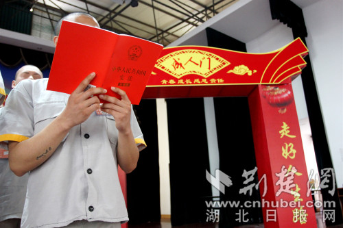 在成人儀式上,41名服刑人員接受民警、社會愛心人士、家長贈送的《中華人民共和國憲法》(宣誓本)后,在民警的帶領下朗誦《憲法》有關公民義務的相關條款。他們還合唱《感恩的心》,表達對民警、社會愛心人士、家長的感激之情。