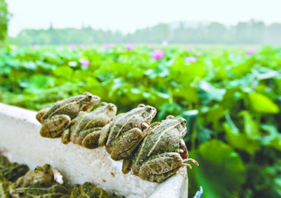 這些青蛙中,有的是武漢地區原來就有的野生青蛙,有的則是人工繁殖出來的青蛙。