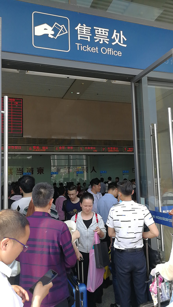 11日下午3時,羅先生告訴澎湃新聞,他準備由湖北荊州返回武漢,購買了當日中午D5958次由荊州至漢口的火車票,結果在火車站等了3個多小時一直未能發車。羅先生發來的圖片顯示,火車站屏幕顯示,多趟列車晚點,有的晚點達3個多小時。火車站聚集了不少乘客,退票的乘客排成了長隊。