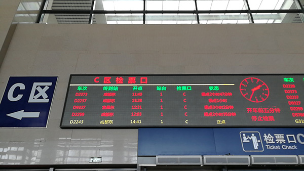 荊州火車站顯示屏顯示多趟列車晚點 羅先生供圖