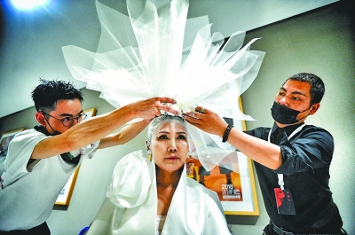 胡社光對本報記者說,這場大秀之所以讓自己的媽媽打頭陣,就是因為主題是“絲路·母親”,讓媽媽走在最前面最符合主題。由于現場100位模特都是媽媽級,有的甚至是奶奶級,胡社光每一件衣服都需要為模特量身定制。而這些超齡模特也非常貼心,時常來胡社光的工作室幫把手。這100件美麗的婚紗禮服均來自武漢胡社光時尚工作室的手工制作。