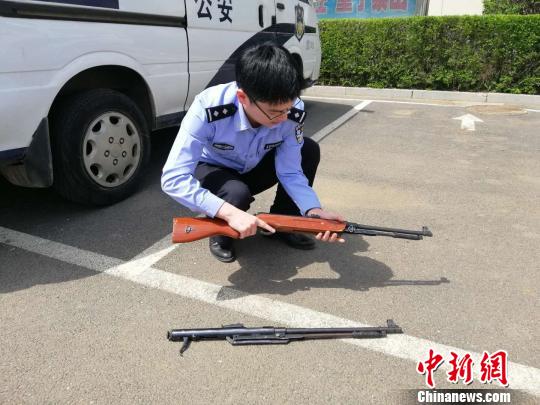 民警展示繳獲槍支。沈陽市公安局皇姑分局供圖