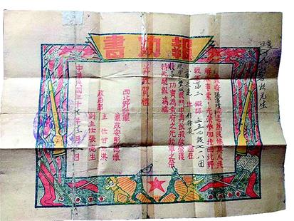 老人保存的“報功書”。