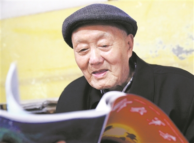 圖:95歲高齡的老英雄張富清閱讀《解放軍畫報》。記者 穆可雙攝