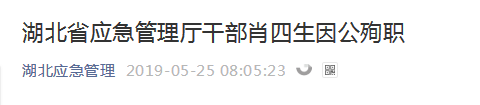 5月24日,湖北省應(yīng)急管理廳官方發(fā)布了該廳一位干部肖四生因公殉職的消息。