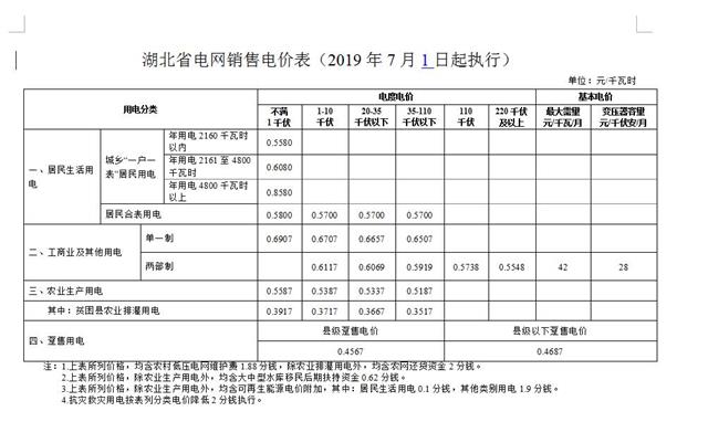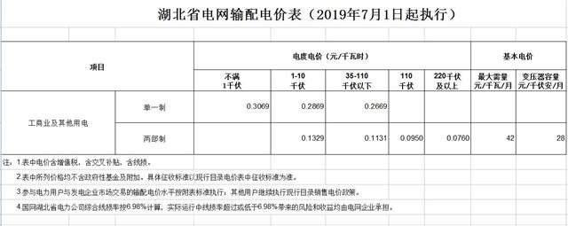 目前,湖北省一般工商業(yè)年用電量在300億千瓦時(shí)左右。7月1日調(diào)價(jià)后,湖北一般工商業(yè)電價(jià)(單一制)將降至每千瓦時(shí)0.6907元(不滿(mǎn)1千伏)、0.6707元(1-10千伏)、0.6657元(20-35千伏)、0.6507元(35-110千伏),而一般工商業(yè)電價(jià)(兩部制)分別為每千瓦時(shí)0.6117元(1-10千伏)、0.6069元(20-35千伏)、0.5919元(35-110千伏)、0.5738(110千伏)、0.5548(220千伏及以上)。