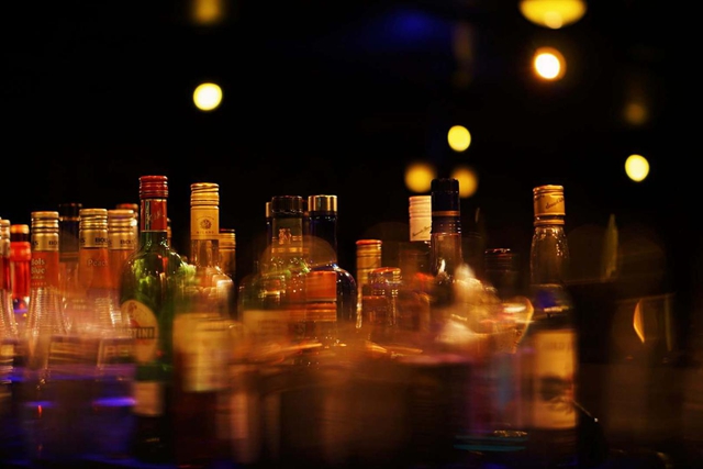 模糊前景是鏡頭前的玻璃酒杯營造的視覺效果