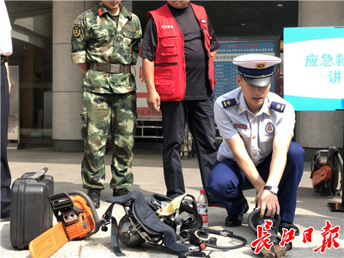 在應(yīng)急救援設(shè)備講解區(qū),江漢區(qū)消防救援大隊隊員現(xiàn)場講解機動鏈鋸、無齒鋸等各種設(shè)備,演示正壓式空氣呼吸器如何使用,市民們很感興趣。在宣傳咨詢臺,市民們紛紛排隊領(lǐng)取電梯安全知識手冊、安全用氣指南、日常生活安全小常識、市民防震手冊等,“這些安全小知識平時多了解,能避免一些事故的發(fā)生”。