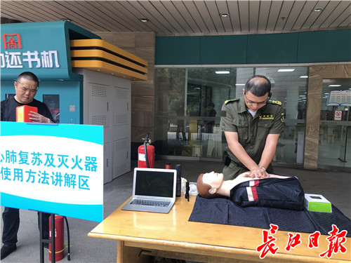 武漢市順防安防火中心工作人員現(xiàn)場演示心臟復(fù)蘇。記者黃麗娟 攝