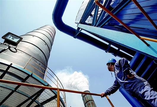 6月15日,技術人員在鄂鋼2號燒結機煙氣脫硫脫硝裝置上進行設備維護。經過裝置處理后由新建煙囪(左)排出的燒結煙氣呈透明狀,和旁邊冒著“白煙”的1號燒結機舊煙囪(中)形成明顯反差。1號燒結機煙氣脫硫脫硝改造正在加緊施工,預計今年8月前建成投入使用,屆時鄂鋼燒結區不再冒“白煙”。寶武集團鄂城鋼廠按照“高于標準、優于城區、融入城市”的定位創建“綠色智慧型城市鋼廠”,目前已啟建了106個環保提升項目。其中單體投資最大的2號燒結機煙氣脫硫脫硝項目已投入運行,處理后的粉塵排放濃度、二氧化硫濃度均減少80%—90%,優于國家超低排放標準。
