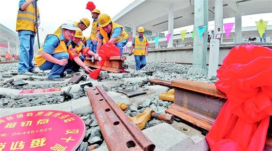 湖北日報訊(記者雷闖、通訊員劉連強、彭特)6月22日,在中鐵十一局工人們的操作下,最后一根500米長軌精準落在十堰北站枕木上,標志著漢十高鐵全線軌道貫通,為漢十高鐵年底通車運行奠定了堅實的基礎。屆時,我省從孝感、襄陽到十堰等鄂北、鄂西北地區的多個縣市將攜手邁入高鐵時代。