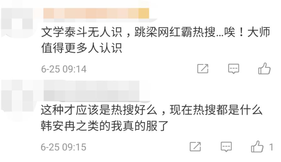有網友感嘆:文學泰斗無人識,跳梁網紅霸熱搜。