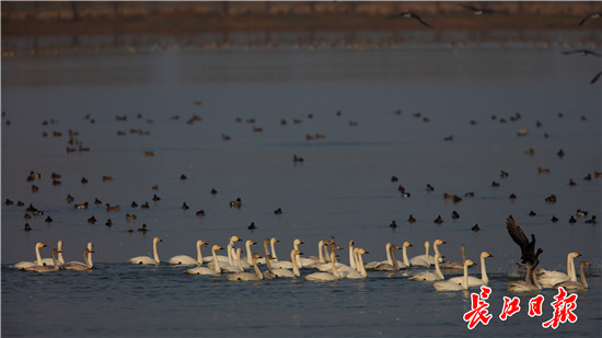 濕地棲息野生動物413種,國家重點保護野生動物38種。濕地高等維管束植物408種,包括5種國家二級保護野生植物。全球極危物種白鶴、全球瀕危物種東方白鸛等在內,近十萬只越冬水鳥在這里棲息、覓食。全球范圍內數量僅存1000余只的極危物種青頭潛鴨,將武漢作為其最大的和最南端的繁殖地,越冬數量超300只。