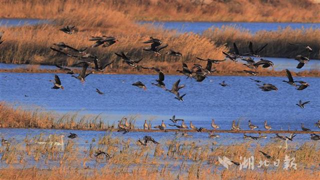 濕地與森林和海洋并稱為全球三大生態系統,森林是地球之肺,濕地是地球之腎,其重要性不言而喻。武漢大江穿城,百湖密布,濕地資源豐富,號稱“百湖之市”“濕地之城”,是我國內陸濕地資源最豐富的特大城市之一,也是全球同緯度和長江中下游湖泊濕地的典型代表地區,自然稟賦優越,生態建設和濕地保護成效顯著。統計顯示,武漢濕地面積16.2萬公頃,占國土面積的18.9%,位居內陸副省級城市第一。濕地棲息野生動物413種,其中國家重點保護野生動物38種。其中,國家一級保護有東方白鸛、黑鸛等 10 種,國家二級保護有灰鶴、白琵鷺等 28 種。府河濕地已成為全球極度瀕危鳥類青頭潛鴨最南端的繁殖地。