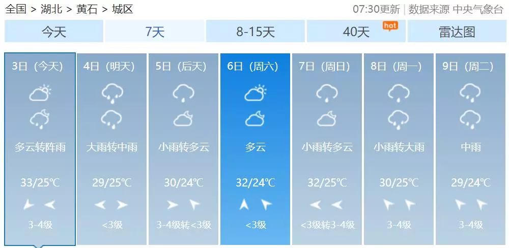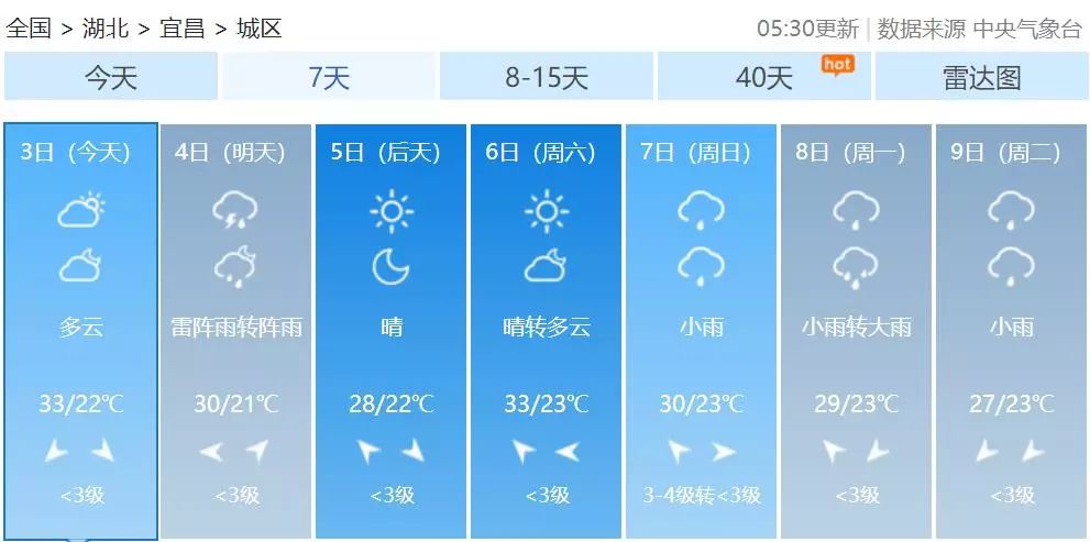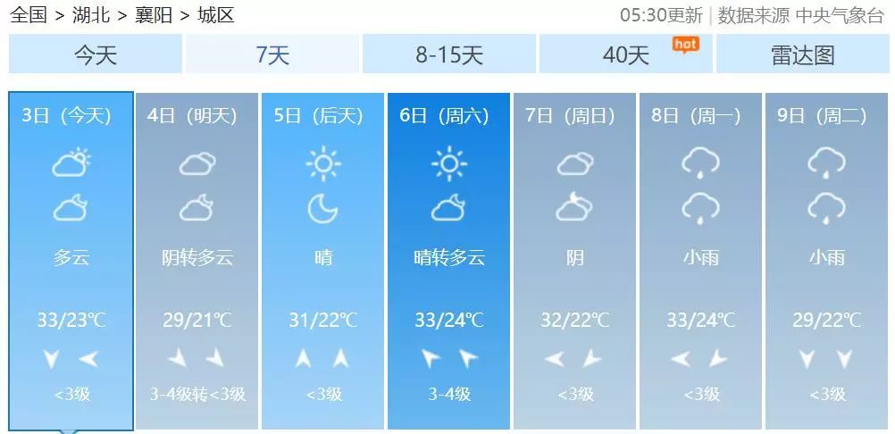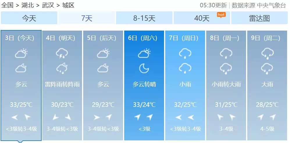 武漢中心氣象臺預計,今天全省繼續維持多云到晴的天氣,最高氣溫大部地區在32~35℃之間。