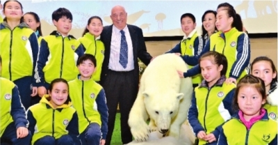 2016年,貝林向武漢捐贈動物標本1507件,捐贈儀式上,貝林先生與武漢學生合影