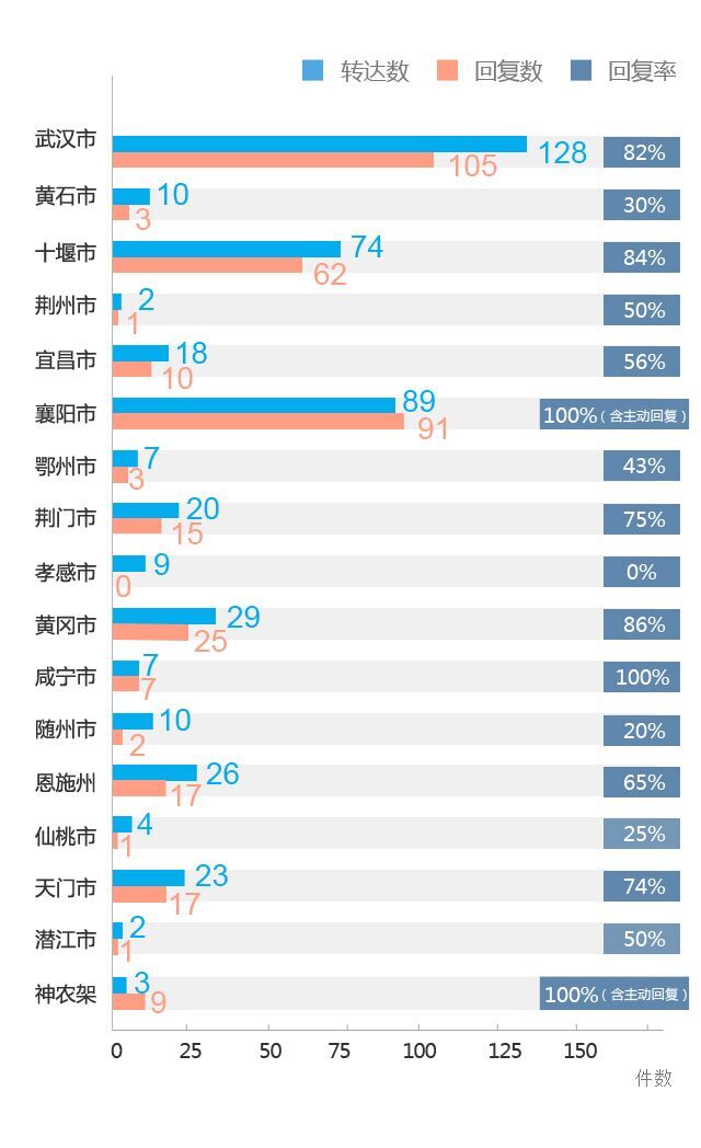 武漢市:轉達128條,已回復105條,回復率82%。