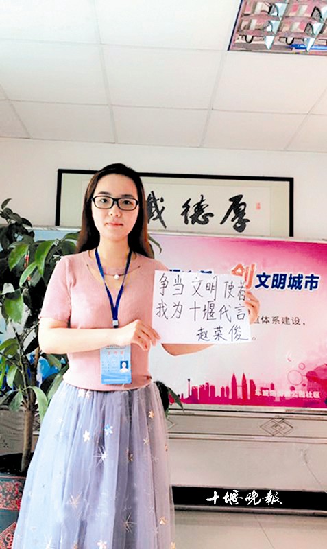 自十堰創文以來,趙榮俊放棄每周末的休息時間,挨家挨戶敲門開展“地毯式”入戶宣傳,確保戶戶走到、單單到人。此外,她還每天堅持到包點小區巡查衛生情況。趙榮俊認為,社區是城市的基礎,沒有文明社區就沒有文明城市,創建文明城市也是加強文明社區建設的過程。她希望在每天平凡的工作中做文明風尚的表率者,做服務群眾的帶頭人,為創文工作添磚加瓦。