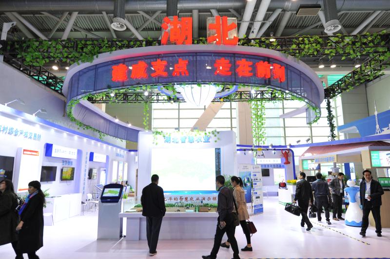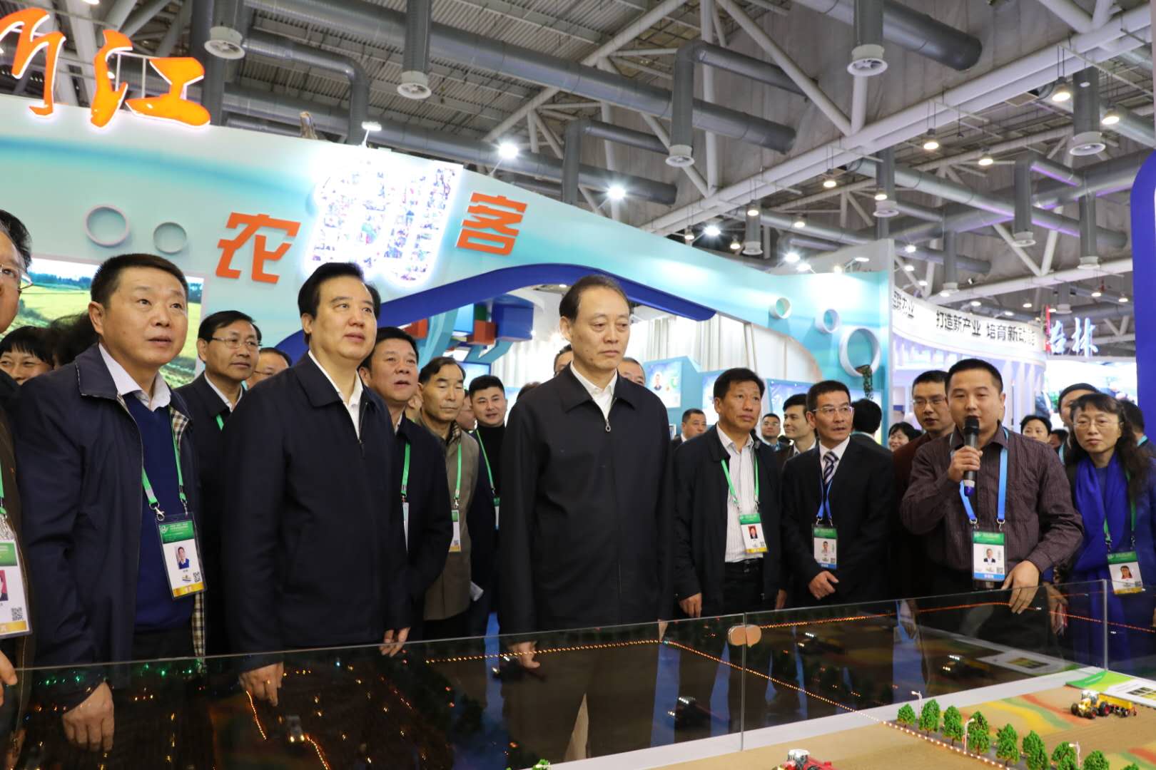 農業部黨組副書記、副部長余欣榮在省委常委、常務副省長黃楚平陪同下察看湖北展區