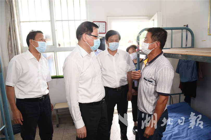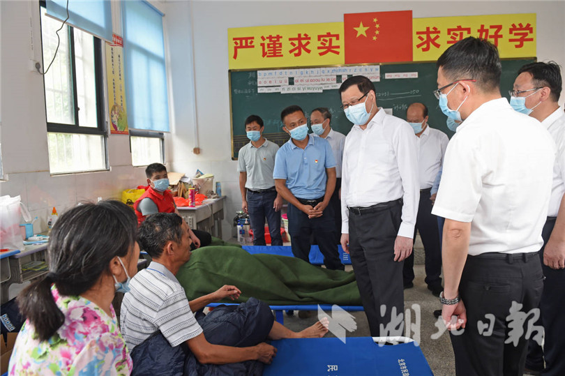 “能吃上熱菜熱飯嗎?有沒有醫(yī)生做健康檢查?家里受災情況怎么樣?”應勇詳細詢問群眾基本生活保障和受災損失情況,鼓勵他們堅定信心,在黨委政府的帶領下,共克時艱、共渡難關,努力恢復災后生產生活、重建家園。走進安置點衛(wèi)生室,應勇察看常用藥品和消殺器具準備情況,向下沉醫(yī)務工作者表示慰問和感謝,要求加強受災群眾健康巡查,做好疫情防控和環(huán)境消殺,確保災后無疫。他強調,大水無情人有情,各地要轉移安置好受災群眾,確保大家有飯吃、有衣穿、有干凈水喝、有安全住處,嚴格落實衛(wèi)生防疫措施;認真做好困難群眾幫扶救助,防止因災致貧返貧;及時修復水毀農田,盡快恢復生產生活秩序。