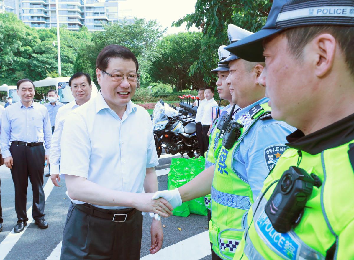 交通早高峰,武漢市徐東大街東湖路路口車流如織,武漢市公安局武昌區(qū)交通大隊(duì)的交警正疏導(dǎo)車輛、維持秩序。“謝謝你們高溫下的堅(jiān)守,辛苦了!”應(yīng)勇看望慰問(wèn)一線執(zhí)勤交警,感謝他們?yōu)楸U铣鞘薪煌ㄖ刃颉⑷罕姲踩鲂懈冻龅男燎谂Α?yīng)勇說(shuō),疫情期間,全省廣大公安干警用實(shí)際行動(dòng)踐行了“疫情在前、公安當(dāng)先”的誓言,在疫后重振的關(guān)鍵時(shí)期,要繼續(xù)發(fā)揚(yáng)優(yōu)良作風(fēng),做好交通保暢、維護(hù)治安秩序等各項(xiàng)工作。