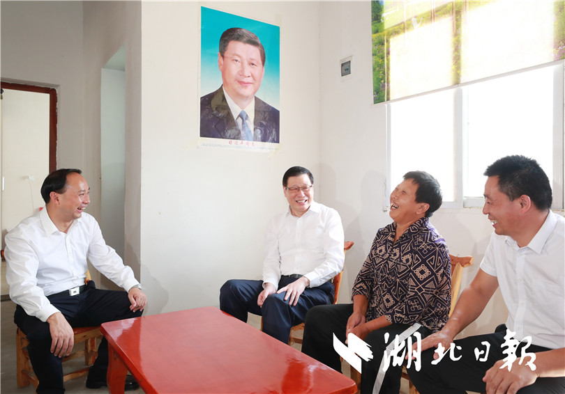 初秋的大別山麓,層巒疊翠,各式村居星羅棋布。應(yīng)勇首先來(lái)到大悟縣新城鎮(zhèn)金嶺村,走進(jìn)脫貧戶李德軍家中,察看居住環(huán)境、詢問(wèn)收入保障、共話鄉(xiāng)村巨變。應(yīng)勇說(shuō),鄉(xiāng)親們脫貧只是邁向幸福生活的第一步,是新生活、新奮斗的起點(diǎn),要更加關(guān)心關(guān)愛(ài)脫貧群眾和邊緣戶的生產(chǎn)生活,不斷鞏固拓展脫貧成果。金嶺村創(chuàng)新設(shè)立新型集體經(jīng)濟(jì)組織“人民公司”,打造小張灣鄂北古民居鄉(xiāng)村旅游驛站。應(yīng)勇走進(jìn)村落,察看鄉(xiāng)村旅游建設(shè)成果,了解村民受益情況,強(qiáng)調(diào)要因地制宜發(fā)展鄉(xiāng)村經(jīng)濟(jì),挖掘特色資源、鄉(xiāng)土文化,做好鄉(xiāng)村旅游“無(wú)中生有”“有中生新”文章,切實(shí)讓鄉(xiāng)村生態(tài)環(huán)境好起來(lái)、產(chǎn)業(yè)發(fā)展強(qiáng)起來(lái)、農(nóng)民荷包鼓起來(lái)。