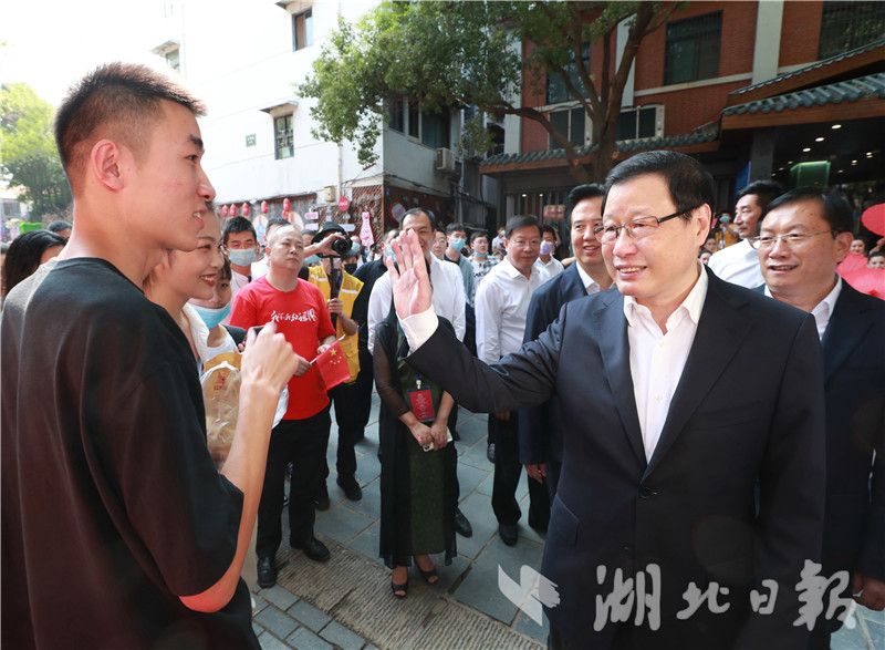 有著“一部活的武昌歷史文化教科書(shū)”之稱(chēng)的曇華林歷史文化街區(qū),店鋪鱗次櫛比,游客攘來(lái)熙往,正在舉行的“國(guó)慶嘉年華”增添了濃厚的節(jié)日氣息。應(yīng)勇來(lái)到曇華林主街,察看進(jìn)出口測(cè)溫、掃碼等常態(tài)化防控措施執(zhí)行情況,走進(jìn)非物質(zhì)文化體驗(yàn)館,同店主和游客親切交談,祝大家節(jié)日快樂(lè)、身體健康。在街區(qū)院落,一首原創(chuàng)民謠《曇華林》吸引不少游客駐足,應(yīng)勇同大家一起欣賞。他指出,街區(qū)是體現(xiàn)城市風(fēng)情、文化底蘊(yùn)、景觀特色的重要載體,要在保護(hù)中更新、在更新中更好保護(hù),保留城市歷史文化記憶。要結(jié)合區(qū)域特點(diǎn),發(fā)展更多具有本土特色、廣受群眾歡迎的文化業(yè)態(tài),培育商、旅、文多業(yè)態(tài)融合的消費(fèi)新模式,讓游客可購(gòu)、可玩、可體驗(yàn),讓城市生活更美好。