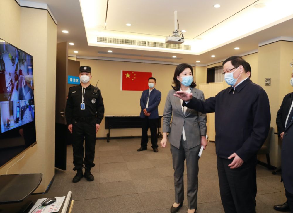 在武昌區境外來(返)漢人員隔離點,應勇實地查看隔離點設施,仔細詢問隔離點工作流程、防護物資儲備等情況。應勇強調,要嚴格落實責任,嚴格規章制度,嚴格閉環管理,落實落細各項防控措施。