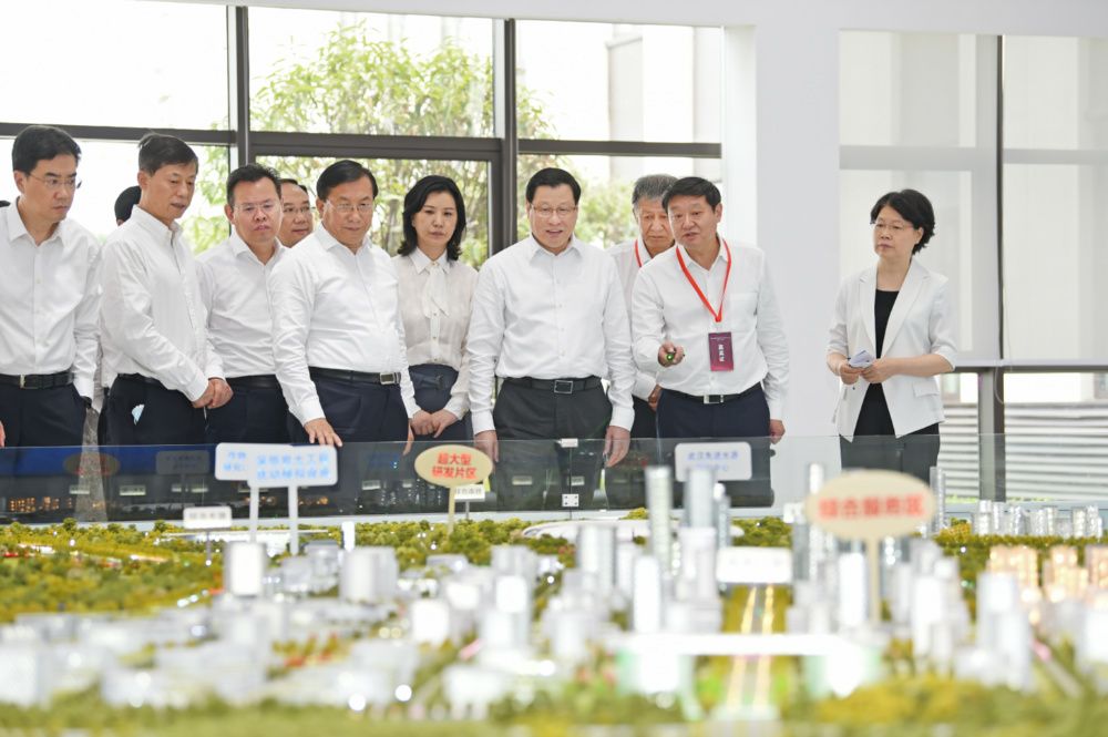 在湖北東湖科學城展示中心,省領導詳細了解科學城規劃建設和大科學裝置布局等情況。