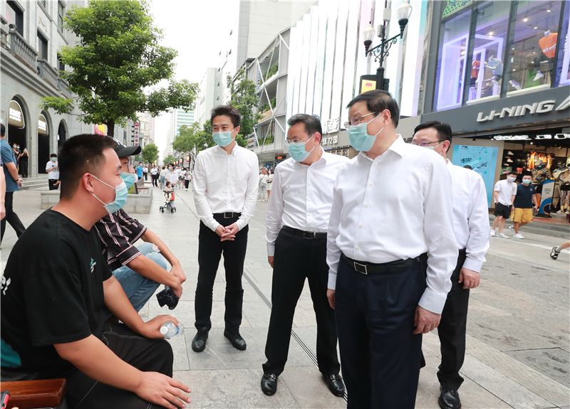 江漢路步行街是中部地區唯一的“國家級”步行街。應勇來到步行街,同游客、市民熱情打招呼。他說,大家一起努力,繼續落實好常態化疫情防控措施,我們的經濟社會發展一定會越來越好。應勇走進湖北特產專賣店、武漢世界館,了解商業業態恢復和促進消費等情況。應勇指出,步行街等商業街區人流量大,常態化疫情防控須臾不可放松,各項防控措施要更加精細化、人性化。要持續優化營商環境,進一步降成本、優服務,落實好提振消費政策措施,著力穩市場、穩預期、穩信心,讓城市更具“煙火氣”。