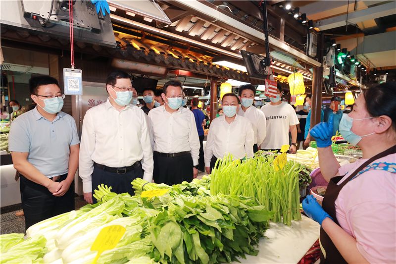 集貿市場關系市民“菜籃子”,同時也是疫情防控重點場所之一。寶善集貿市場里,各類菜品琳瑯滿目,市民正在細細挑選。應勇走進集貿市場,察看菜品供應種類和價格情況,與商戶和前來買菜的市民交談,了解日常經營情況,詢問物價是否穩定。應勇強調,要落實好“人物地同防、常態監測、風險排查、多點觸發”立體型常態化科學精準防控機制,把好物流運輸關、批發交易關、市場銷售關,對進口冷鏈食品要做到采樣全覆蓋、樣本全檢測、包裝全消殺、商品全追溯。要持續做好城市保供穩價工作,確保糧油、肉品、蔬菜、水產等供應充足、價格穩定。要關心關愛困難群體,做好生活托底保障工作。