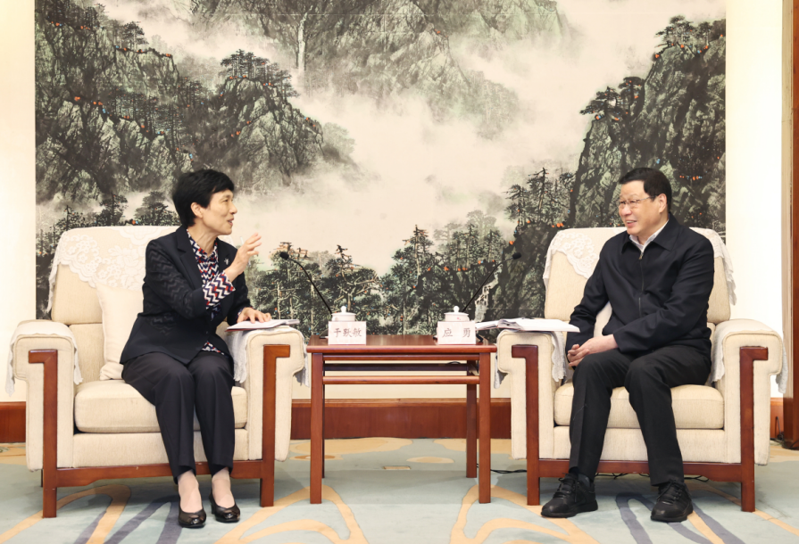 應勇與黨史學習教育中央第四指導組組長于躍敏座談