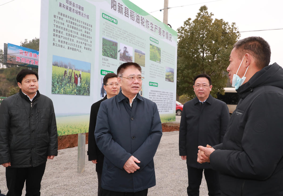 王蒙徽來到黃石新港港口,了解港口江海聯(lián)運(yùn)、水鐵聯(lián)運(yùn)和園區(qū)建設(shè)情況,察看港口運(yùn)行,強(qiáng)調(diào)要加快發(fā)展多式聯(lián)運(yùn),構(gòu)建現(xiàn)代綜合交通運(yùn)輸體系。在陽新縣浮屠鎮(zhèn)家和家庭農(nóng)場(chǎng)稻油輪作基地,王蒙徽聽取陽新縣水稻、油菜輪作情況介紹,仔細(xì)詢問土地流轉(zhuǎn)、農(nóng)技服務(wù)、農(nóng)場(chǎng)用工等情況,指出要推動(dòng)新型農(nóng)業(yè)經(jīng)營(yíng)主體與農(nóng)戶深入合作,拓寬農(nóng)民增收致富渠道。在勁牌有限公司,王蒙徽與企業(yè)負(fù)責(zé)人親切交流,察看包裝生產(chǎn)線,勉勵(lì)企業(yè)持續(xù)加強(qiáng)技術(shù)創(chuàng)新,實(shí)現(xiàn)更好發(fā)展。
